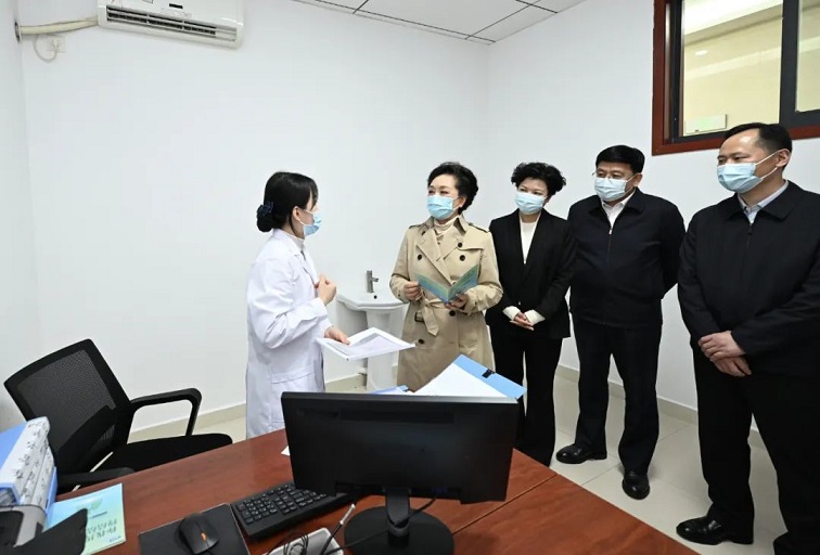 在洞井街道社区卫生服务中心,彭丽媛看望慰问基层医务工作者,了解基层结核病诊治服务管理工作,同前来进行健康咨询的结核病康复患者、等候接种疫苗的儿童和家长亲切交流,细致了解结核病预防、治疗、康复等有关情况,希望大家继续携手努力,共同为终结结核病流行作出贡献。