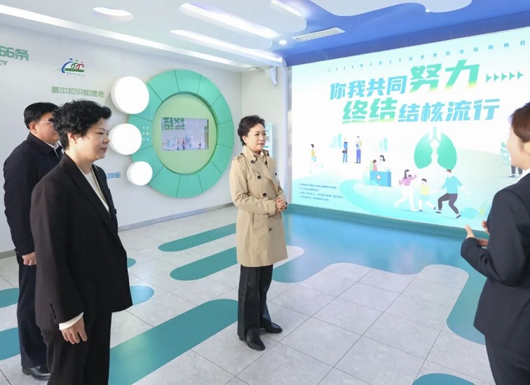 彭丽媛教授在长沙市雨花区健康教育馆调研结核病防治宣传工作
