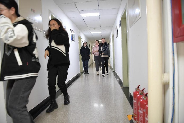 同志们认真参与消防应急疏散演练