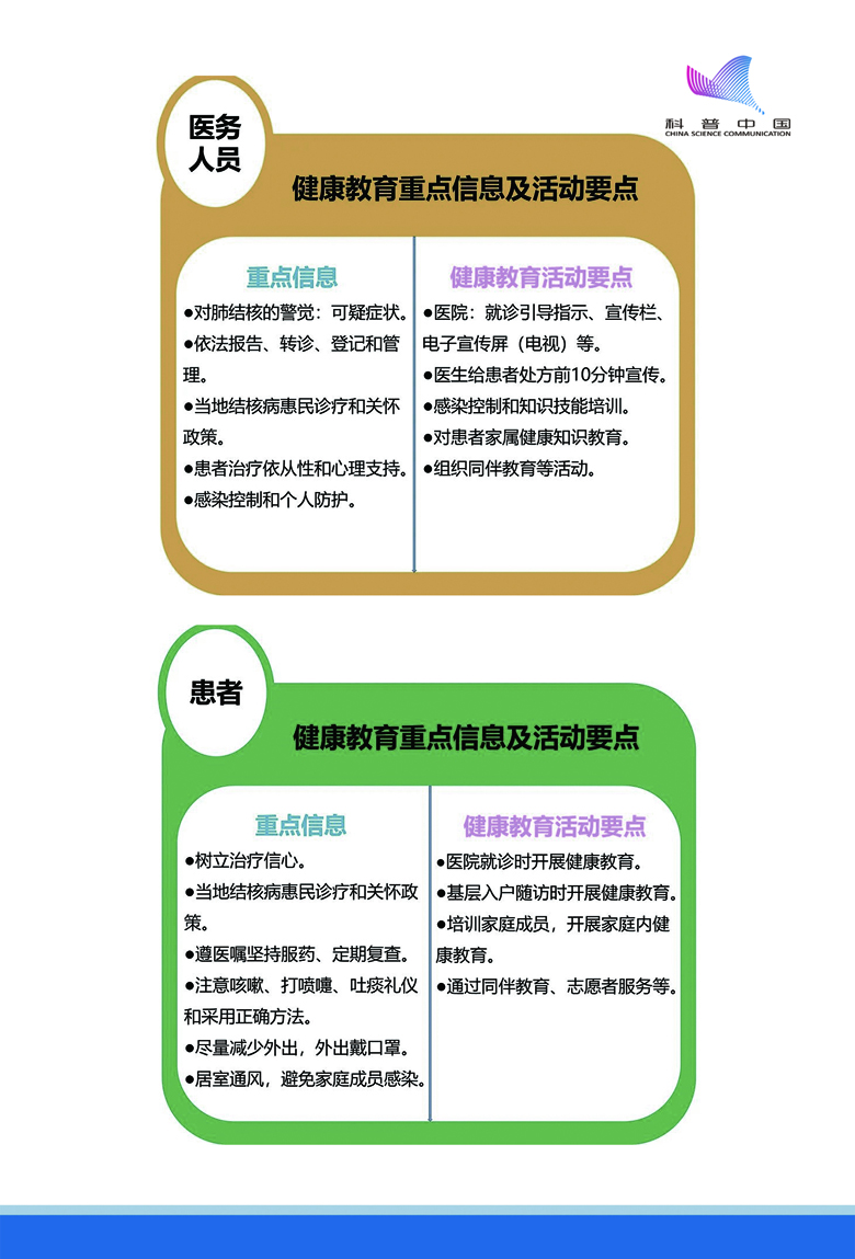 医务人员和患者结核病防治健康教育重点信息及活动要点