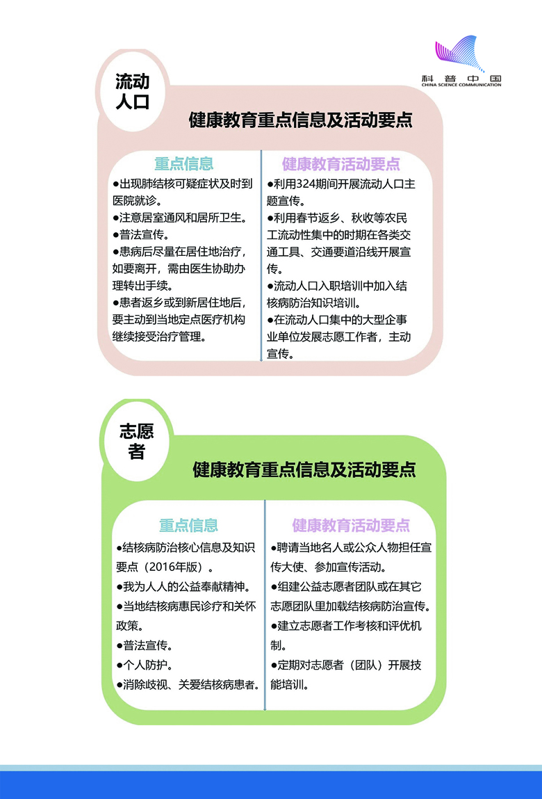流动人口和志愿者结核病防治健康教育重点信息及活动要点