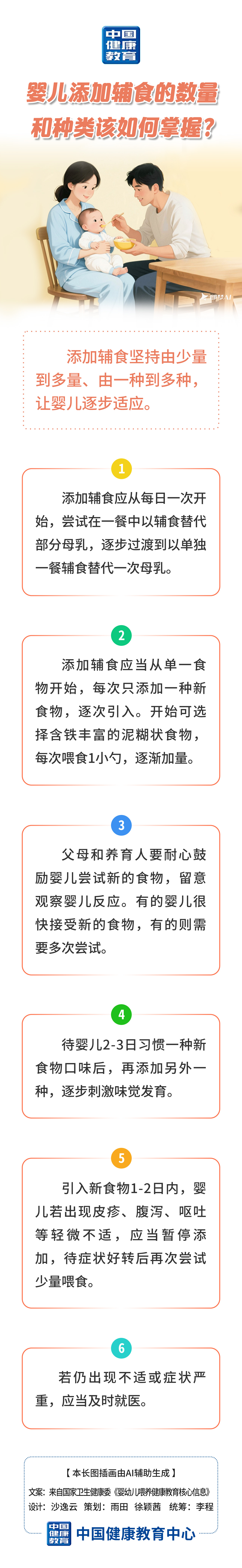 科普长图 | 婴儿添加辅食的数量和种类该如何掌握?