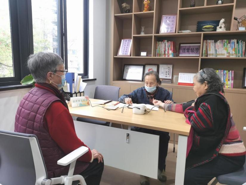 为及时帮助社区高龄、孤寡、独居老年人,2002年社区推出了“黄手绢、小红灯”呼叫帮扶服务。老年人需要帮助的时候,白天可在窗户外挂一条黄手绢,晚上可点亮小红灯,就会有志愿者或工作人员上门服务。如今,“黄手绢、小红”已变成老年人健康手环上的红、黄按键,线上呼救的一头连着社区,另一头连着老年人的家属。除了智能健康手环,社区还为1800多位60岁以上失能失智、独居、孤寡老人安装了电感、烟感和气感预警三件套装置,提供AI马桶水位监测器、离园守护等服务,通过这些数字化智能产品,将接听呼叫变为主动发现需求。此外,数字化的管理模式,让老年人在家即可享受到“有呼必有应”的专属服务。
