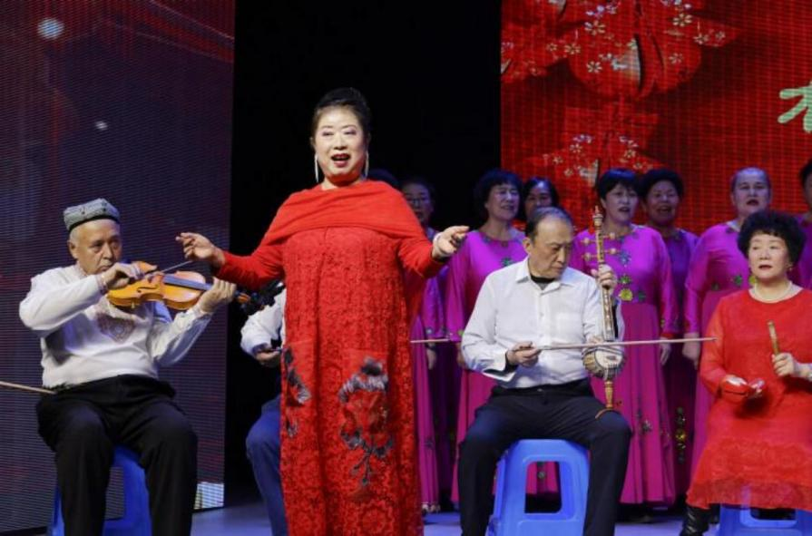 2.老有所学,打造文艺互学平台。利用现有阵地,采取社区搭台、居民唱戏方式,社区组建了舞蹈队、模特队、合唱团和器乐队等6支老年活动团体,参与老人 370 余人,帮助老年群体走出家门,广交朋友。每天在社区功能室开展各类文体活动,为辖区传统文化传承发扬带来更多的动力和活力,同时也为社区打造了一支主动参与社区建设的中坚力量。其中,“星光 ”老年合唱团尤为突出。该合唱团由辖区6个少数民族的老年群体组成,现有队员 120 余人。队员阿孜古丽的丈夫在她 51 岁时去世,留下 3 个孩子。退休后突然闲下来后变得焦躁不安,患上了轻度抑郁症。经社区工作人员多次劝说,阿孜古丽加入合唱团,在队员们的热心帮助下,汉语越来越好,并学会了唱歌和舞蹈。随时间变长,阿孜古丽忘掉了忧伤,精神注意力转移到更有意义的事情上,由以前的拘谨,变得越来越开朗,更善于表达了。阿孜古丽说: “我在合唱团 5 年了,大家就像石榴籽一样紧紧抱在一起,我要一直在这里,和大家一起歌唱我们现在的幸福生活。”